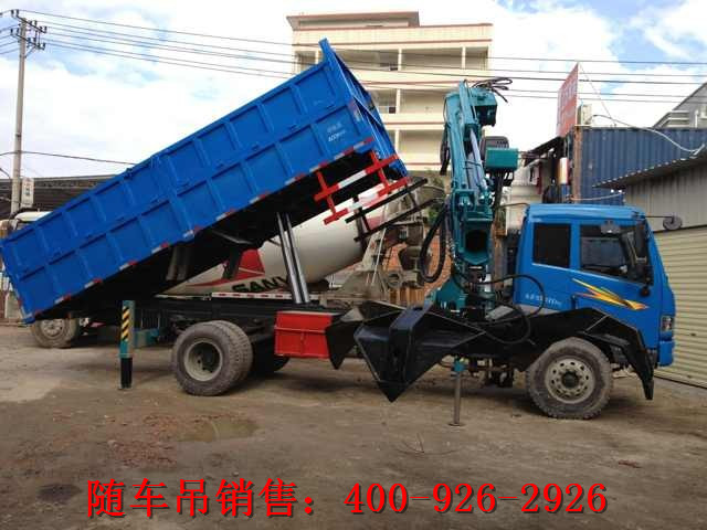 這臺伸縮臂隨車吊, 2臂已完全伸出,34臂剛開始伸出,是第二種方式